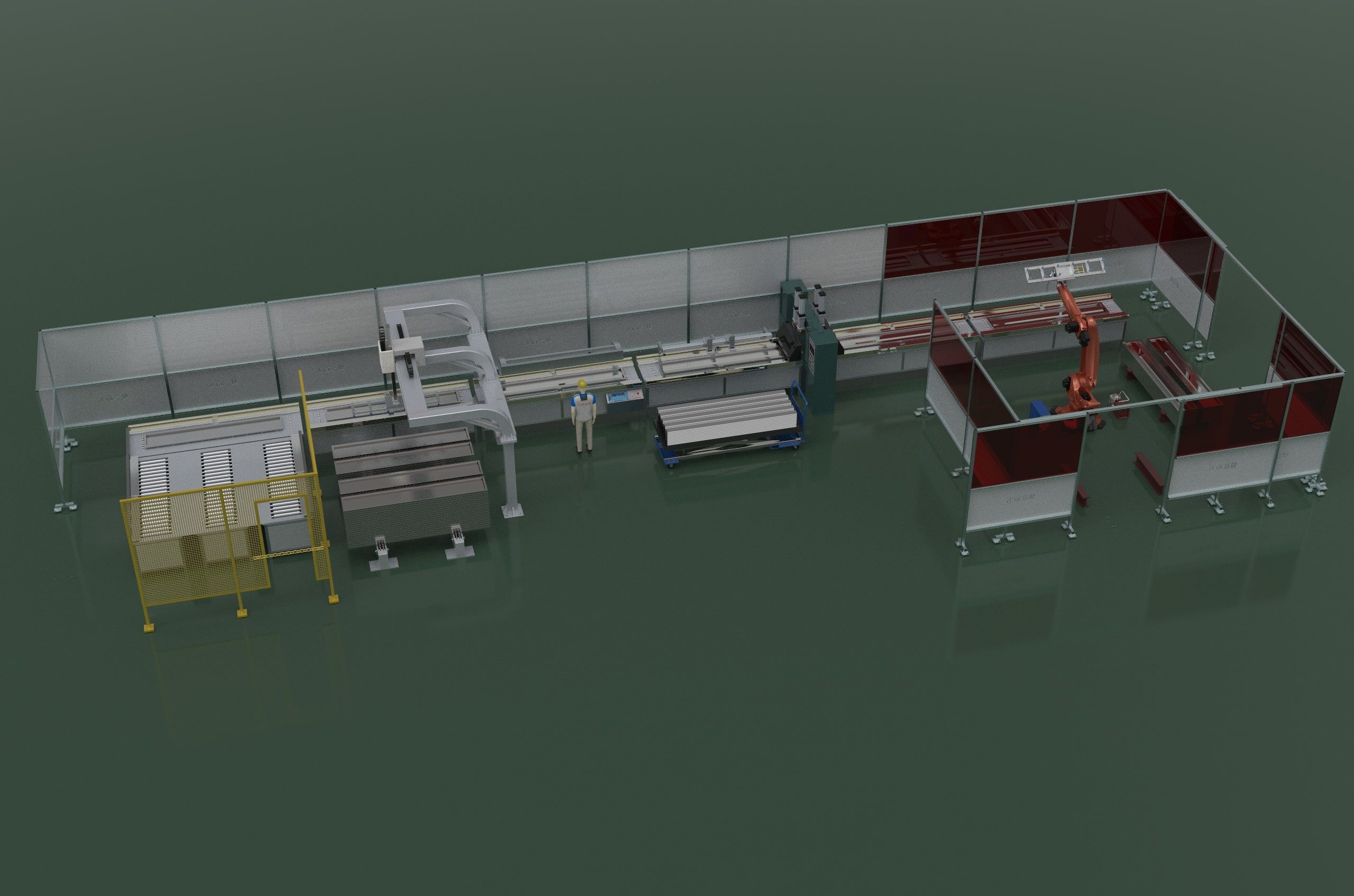 用途:本儀器用于碳鋼層門加強(qiáng)筋放置與焊接的自動(dòng)化裝配。電梯碳鋼層門裝配自動(dòng)化流水線,客戶只需將生產(chǎn)任務(wù)單錄入流水線監(jiān)控設(shè)備,提供半成品,從流水線前端流入,流水線末端就能得到完整的總成,具體的流水線過程:半成品層門堆垛在一個(gè)指定位置,機(jī)器人自動(dòng)上下料,完成加強(qiáng)筋放置、連接(鉚接、焊接),送到成品區(qū),后面由機(jī)器人完成碼垛。該設(shè)備自動(dòng)連續(xù)完成上料加強(qiáng)筋放置鉚接焊接等作業(yè),取代人工操作,所需人手少(減少75%以上),裝配效率高(全部過程30秒以內(nèi)完成),產(chǎn)成品質(zhì)量穩(wěn)定,節(jié)約大量人工成本,是廣大電梯制造行業(yè)完善質(zhì)量、提高生產(chǎn)效率、增強(qiáng)工作效益的裝備。