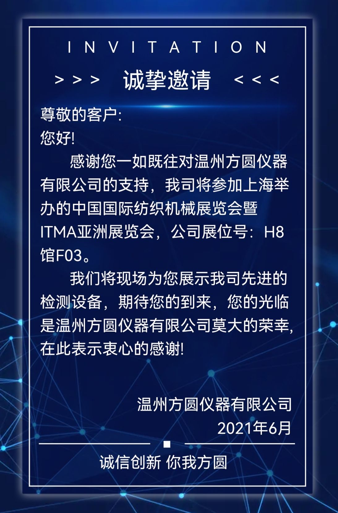 溫州方圓儀器有限公司邀請(qǐng)函