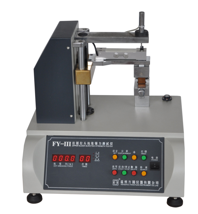 FY-III拉鏈拉頭抗張強力測試儀 QB/T 2171,QB/T 2173,QB/T 2172,ASTM D2061等標準。